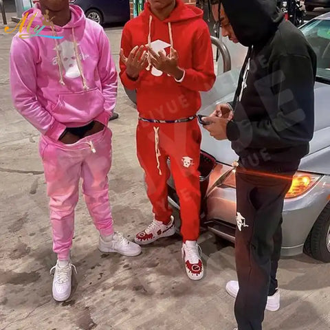 OEM Custom Designs High Quality Men Pullover Sports Suit Track Suits Hip Hop Trousers Two Piece Set Jogging Tracksuit For Men